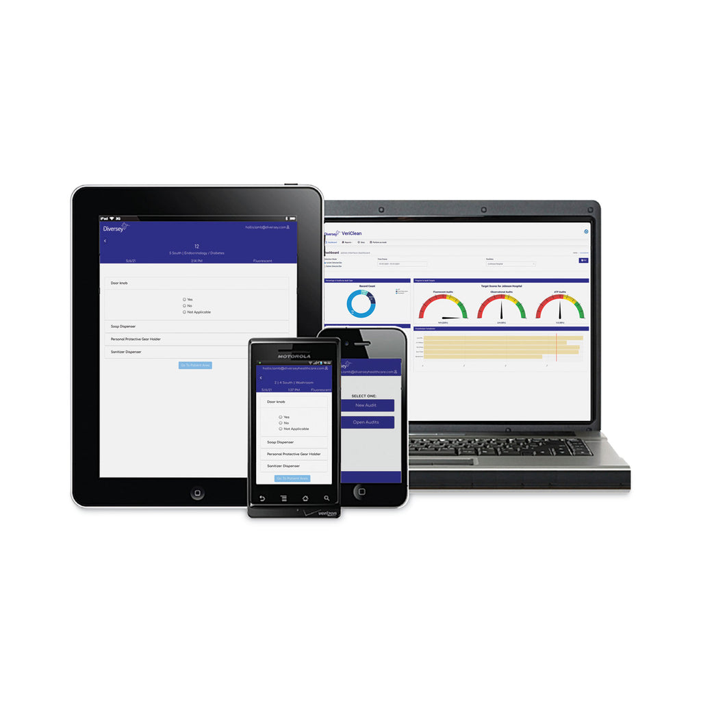 Part of the VeriClean cleaning validation program. Can be applied to vertical, horizontal or the underside of surfaces with ease. Marked surfaces are easy to detect. Sprayer applies 6" diameter circle, giving better clarity to the quality of cleaning than a single spot. Easy to remove with chemical and mechanical action. Spray, when dry, is invisible to the naked eye, but is easy to detect with a black light. iMap Software is a web-based data collection and reporting platform. Works on any smart device or computer, supports data collection from multiple monitoring methods, including ATP, direct observation and fluorescence. Automated reporting available 24/7, with reporting capability by facility, room, surface and cleaner. Applicable on any hard, non-porous surface.