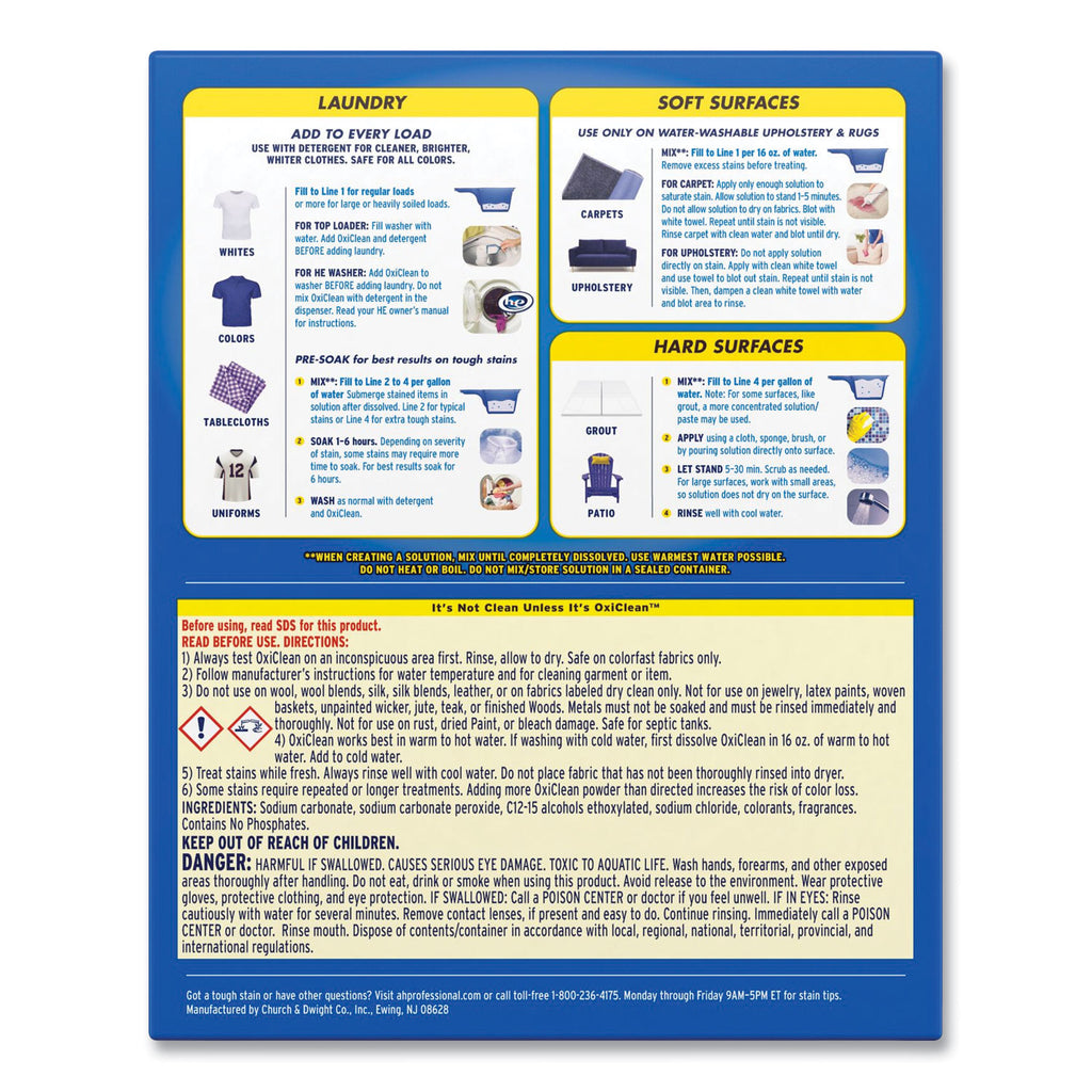 Water-activated, oxygen-based stain fighter works extremely well as a presoak or laundry detergent additive. Maximum-strength formula eliminates even the toughest stains. Color-safe and chlorine-free.