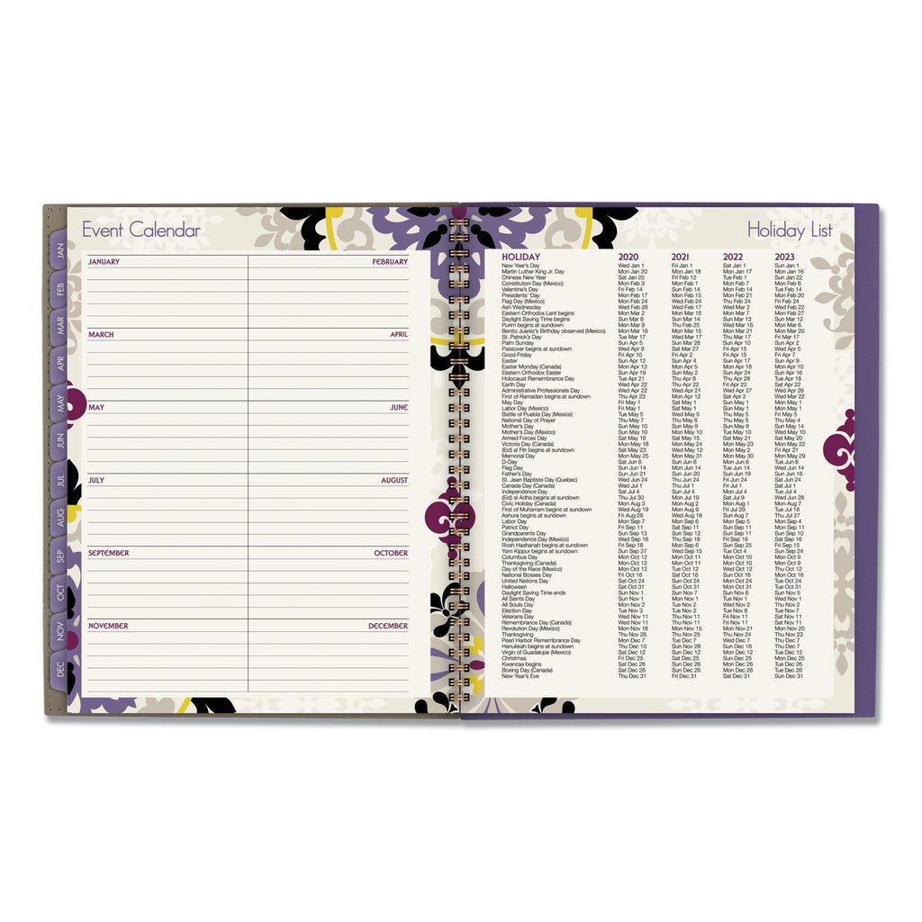 The classic medallion design is given a twist by pairing it with these vibrant colors. Block format: open scheduling. One week per two-page spread. One month per two-page spread with notes space. Past and future months reference.