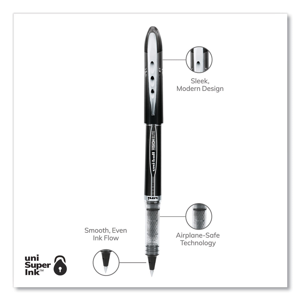 Create ideas as vividly as can be imagined. Features a bend-resistant stainless steel tip and a tungsten carbide rollerball. Capped roller pens deliver smooth, intense lines with unparalleled definition - useful for note taking, list making, signing checks and legal documents, and even uniquely embellishing creative writing projects. Innovative uni Super Ink technology effectively entraps the gel ink into the paper, producing fraud, fade and water-resistant documents that resist check washing or bleaching.