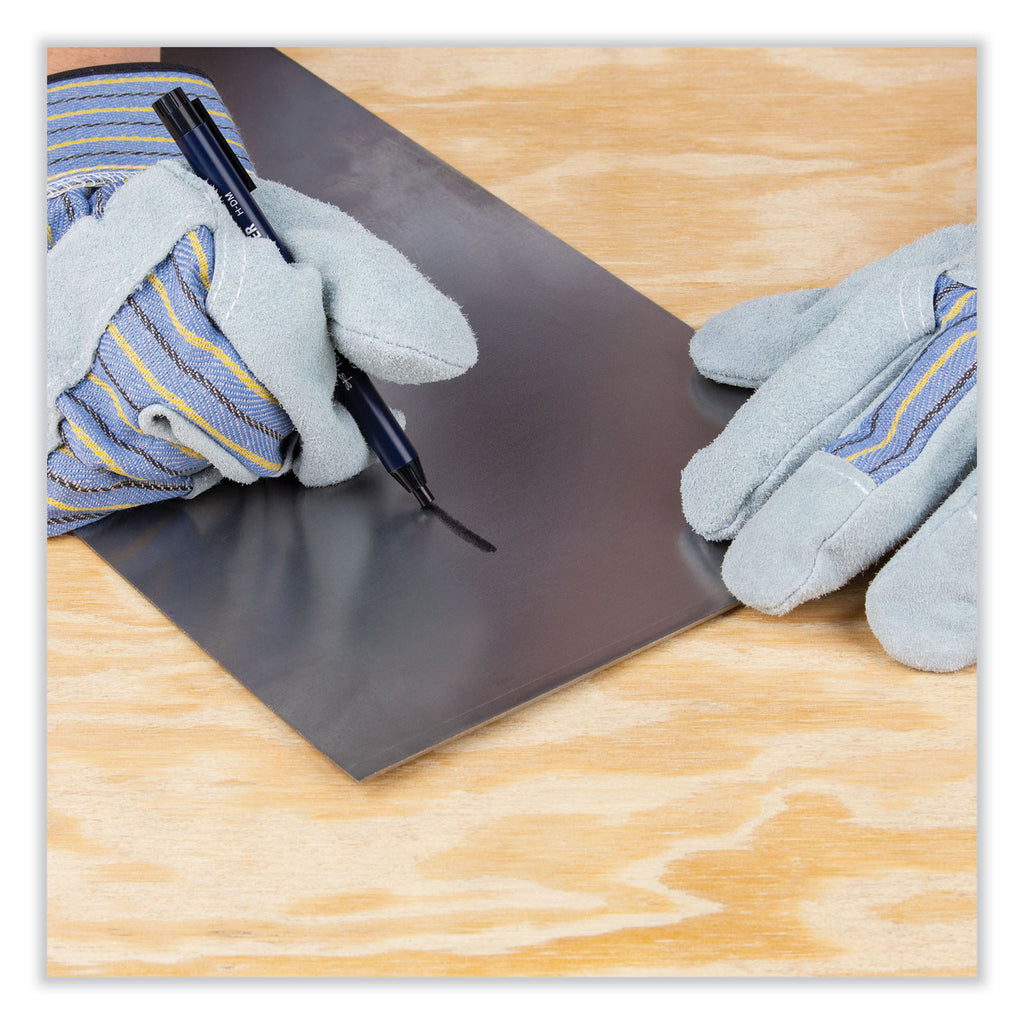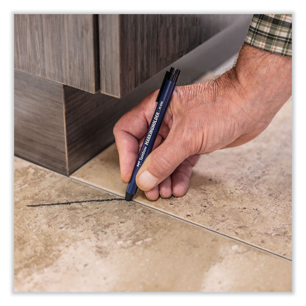 Versatile wax-based marking pencil for smooth, legible writing on a variety of surfaces. Use on both porous and nonporous surfaces, such as ceramics, stone, wood, glass, rubber, plastic, textiles, metal, coated paper, cardboard and more. Water-resistant and works great on both dark and transparent surfaces. Easily erase from nonporous surfaces by wiping with a damp cloth. Refillable pen-style body features rotate-to-advance system and durable clip, making it easy to use and store. No sharpening needed and pen-style design ensures entire marking pencil is used without any waste. Perfect for craftsmen and professional use in industrial environments. Economical to refill and reuse existing applicator.