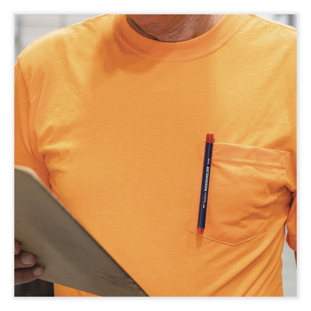 Versatile wax-based marking pencil for smooth, legible writing on a variety of surfaces. Use on both porous and nonporous surfaces, such as ceramics, stone, wood, glass, rubber, plastic, textiles, metal, coated paper, cardboard and more. Water-resistant and works great on both dark and transparent surfaces. Easily erase from nonporous surfaces by wiping with a damp cloth. Refillable pen-style body features rotate-to-advance system and durable clip, making it easy to use and store. No sharpening needed and pen-style design ensures entire marking pencil is used without any waste. Perfect for craftsmen and professional use in industrial environments. Economical to refill and reuse existing applicator.