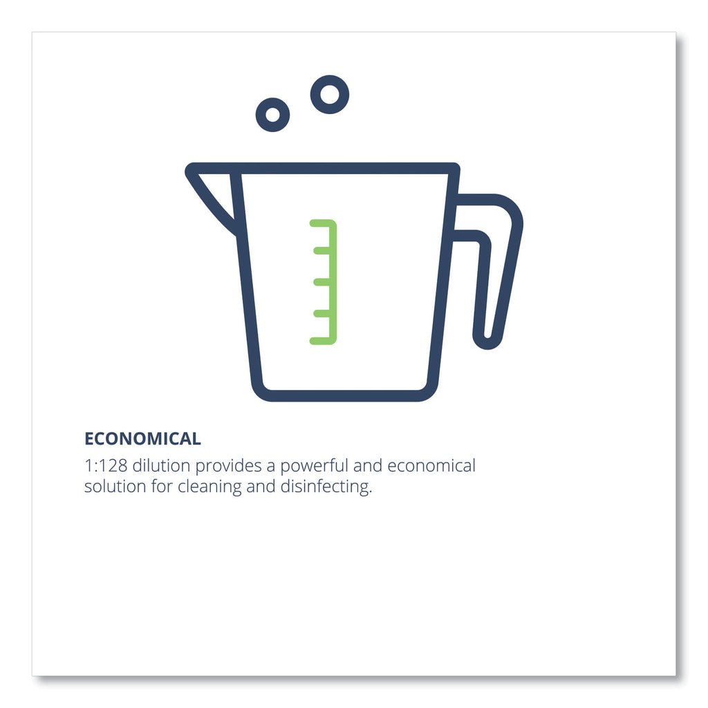 Highly effective one-step cleaner and deodorizer is equipped with germ-killing power to decontaminate surfaces across healthcare, education and commercial environments. An excellent 1:128 dilution ratio ensures powerful cleaning and sanitizing at an economical price point. This product has been found to be effective for use against SARS-CoV-2, the cause of the COVID-19 virus.