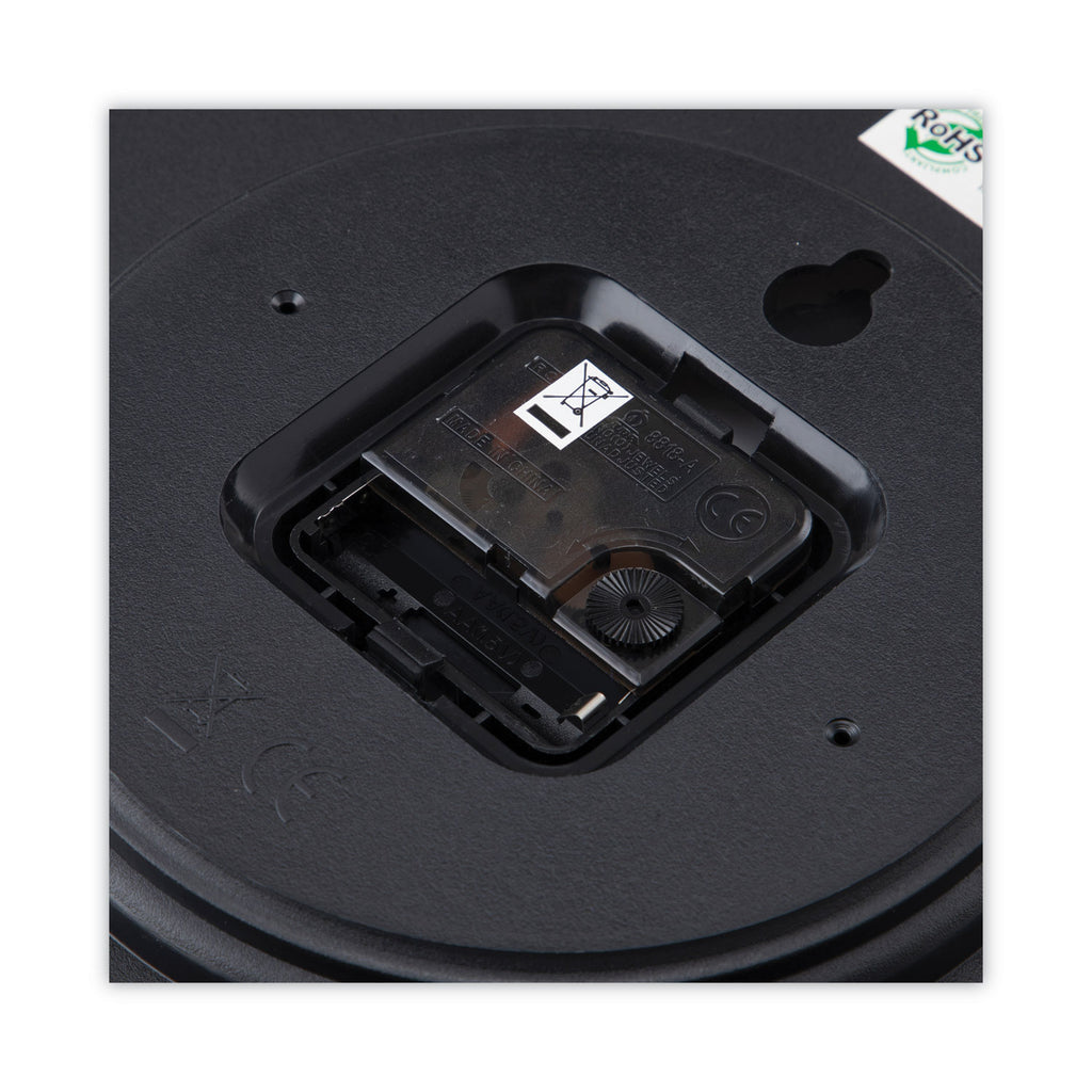 Modern, simple, large, round clock provides a clear reading every time, even from a distance. The silent sweep movement eliminates distracting ticking sounds. Sleek frame with large, black, easy-to-read numerals. Crystal clear, plastic face is extremely durable and shatter resistant. Features hour, minute, and second hands for precise reading. Uses 1 AA battery (sold separately).