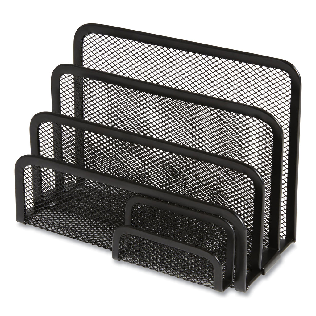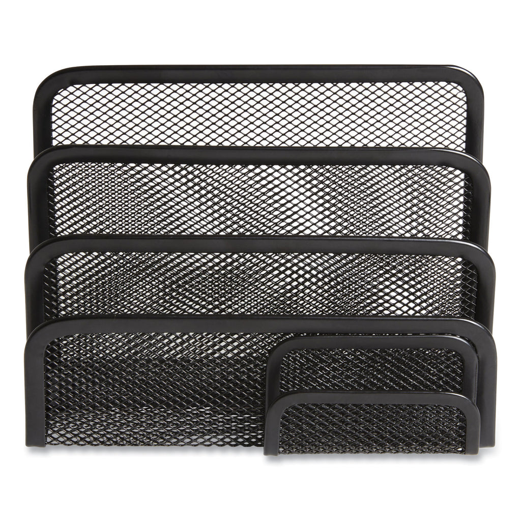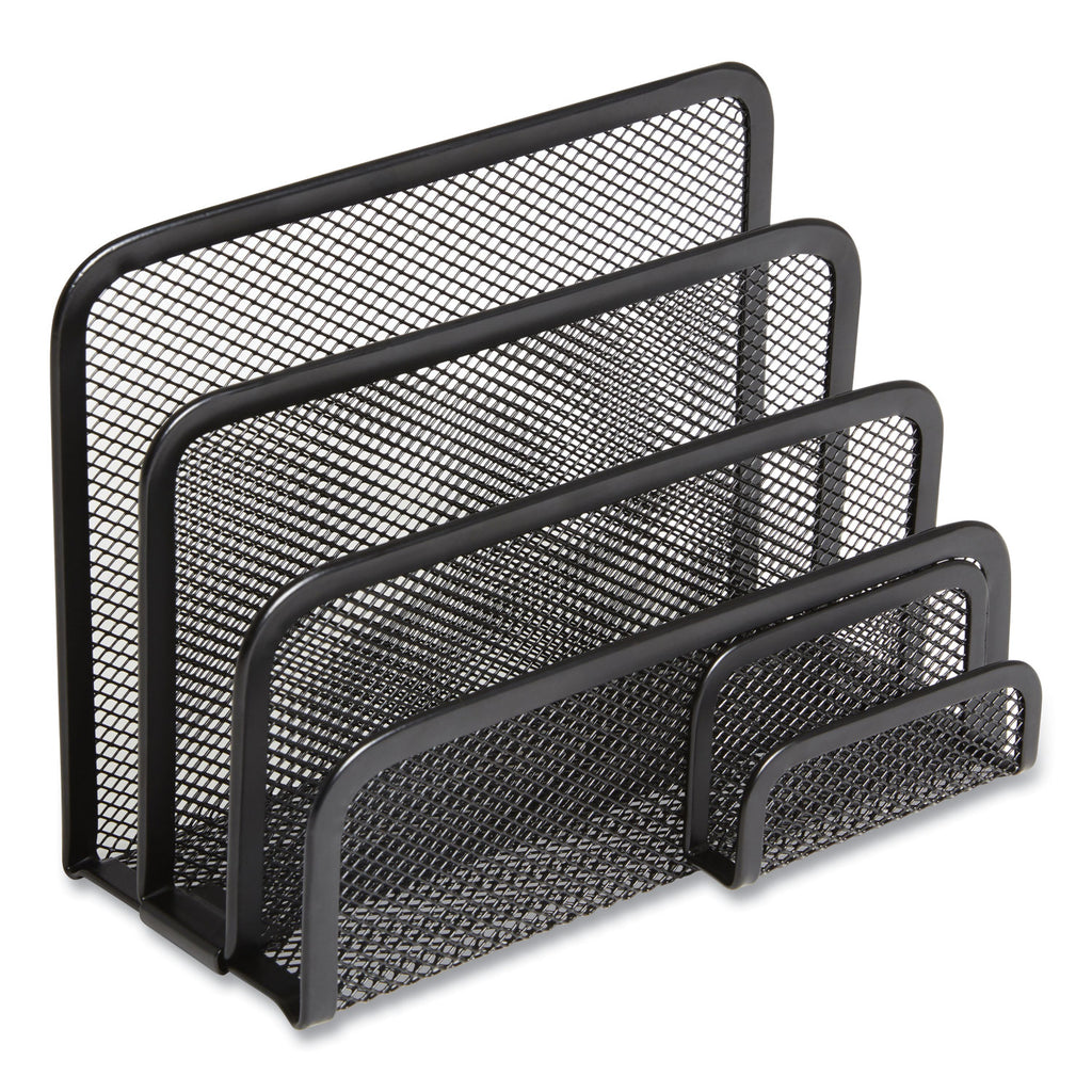 Organize your ingoing and outgoing mail while keeping your business cards within easy reach. Staggered dividers make it easy to keep track of what's what. Features a tightly woven metal-mesh body and a sleek, flat-square frame with rounded edges.