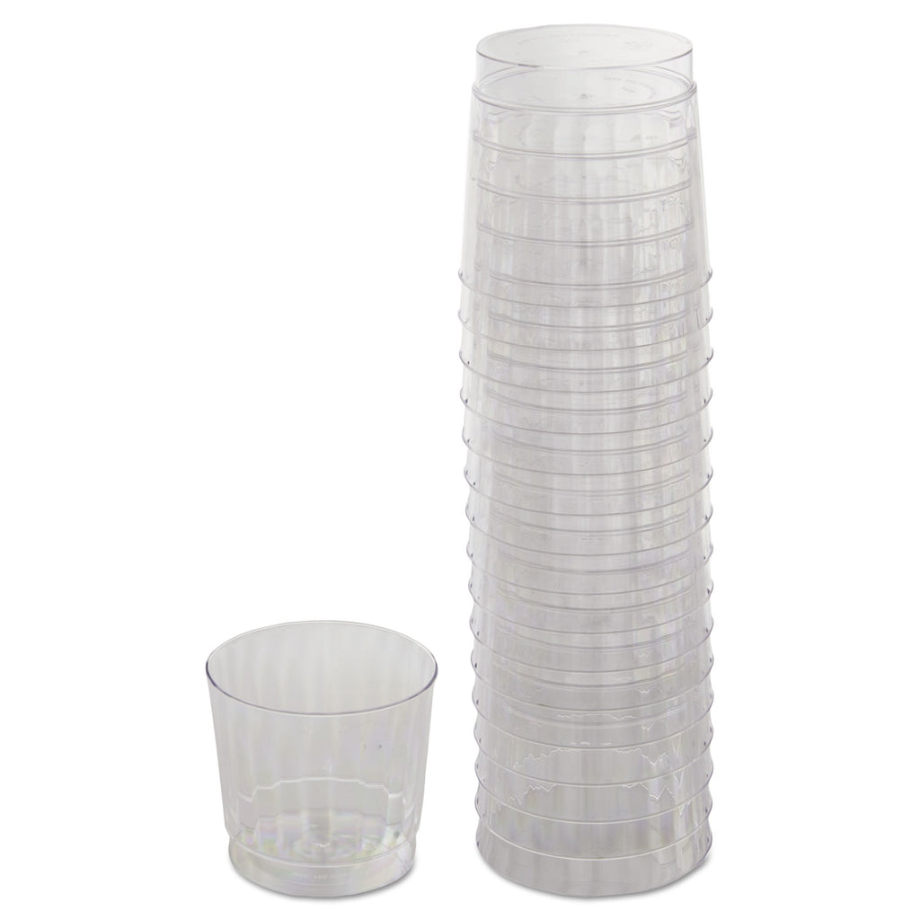 Stylish plastic tumblers are made to be sturdy. Classic, unadorned design is a sleek accompaniment to any party or catered event. Tumblers combine the elegance of glass in a more durable plastic form.