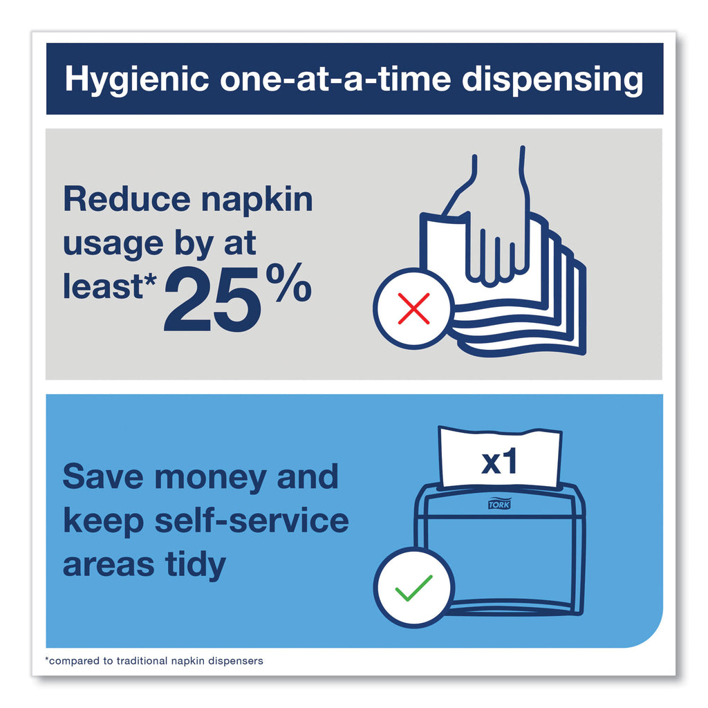 Strengthen your quick-service restaurant with a system that will help you improve hygiene and reduce your napkin consumption by 25% compared to traditional napkin dispensers. This well-enclosed dispenser protects napkins so guests only touch what they take, improving cleanliness. The pack solution provides extra reassurance since the napkins are covered by paper packaging during transport and storage.