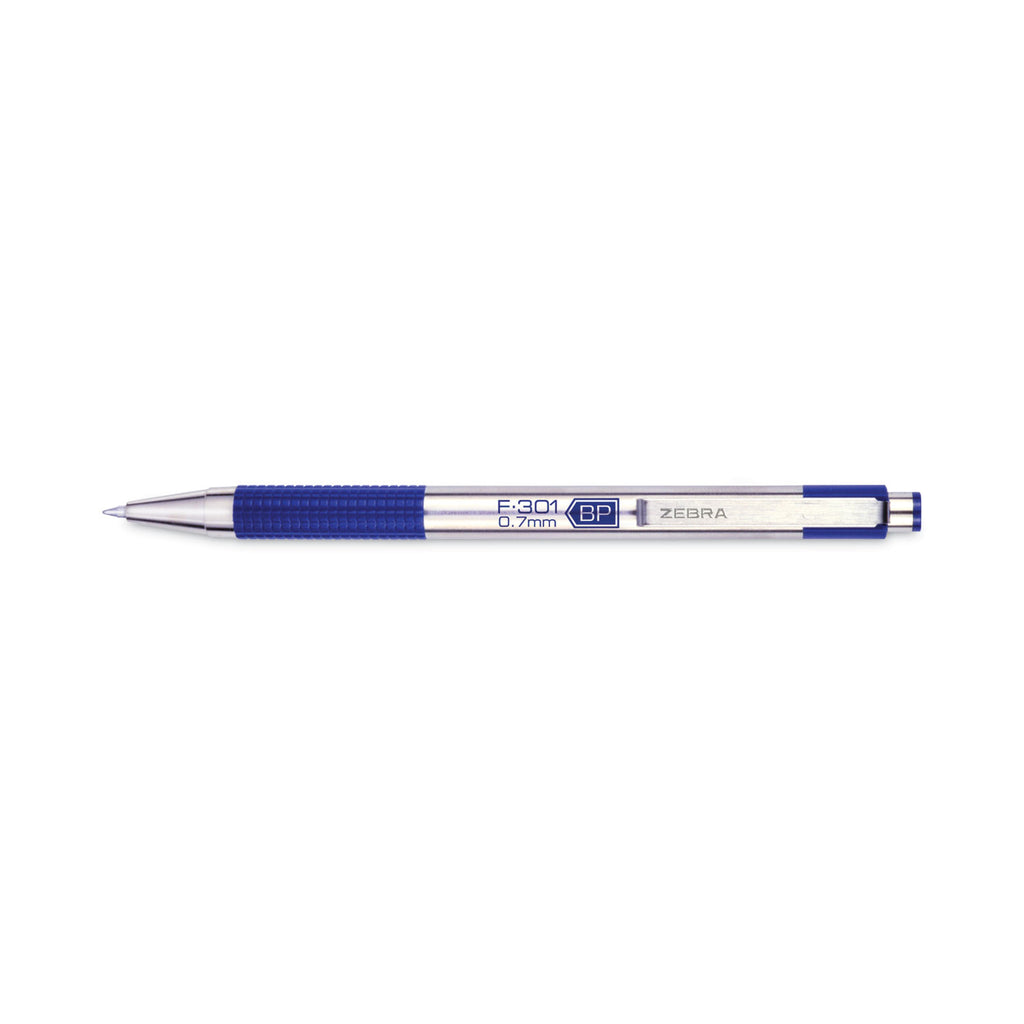 Zebra® F-301 Ballpoint Pen, Retractable, Fine 0.7 Mm, Blue Ink, Stainless Steel/blue Barrel